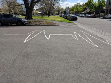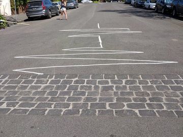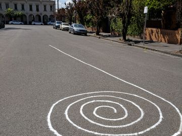 We place an extraordinary amount of trust in a painted line on an asphalt surface to cross any road safely. Lines are a graphic form of communication and control, from writing to lines on a road, to lines on a map. These are a series of playful, unsanctioned temporary piss-takes of lines that we usually take for granted.