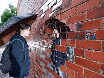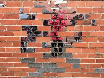 Noble Park is a colourful, vibrant and aromatic suburb of Melbourne with a high density of resettled refugees from diverse ethnic communities. COMMUNITY is a temporary reflection of members of that community activated by each passing pedestrian in a local laneway. Acrylic mirrored bricks were stuck to the face of the brick wall on one side of the lane. The mirrors gather at the centre of the laneway as a fragmented doorway. An incomplete reflection of a fragmented self gathered into a community.